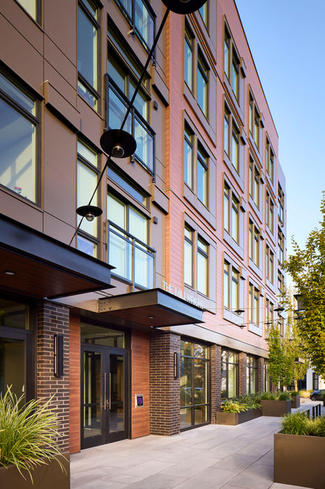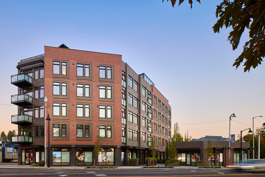 The exterior of this highly visible, mixed-use apartment building at the south portal of the Fremont Bridge (site of former Nickerson Street Saloon) had already been approved when Tiscareno inherited the project. So, the job was “filling the shell” to the new owner’s specifications: larger units and maximized views of the iconic Fremont Cut. In a building with no parallel walls, unit planning required resourceful design. The result is 60 units, two-thirds of which boast water views. Maximizing amenities within zoning restrictions was another challenge, met with clever workarounds like creating a rooftop view lounge inside a working greenhouse, and installing solar panels atop rooftop barbecue cabanas. Lively retail, including a coffee shop across a pedestrian alleyway, establish The Millwright as a vibrant neighborhood anchor.
